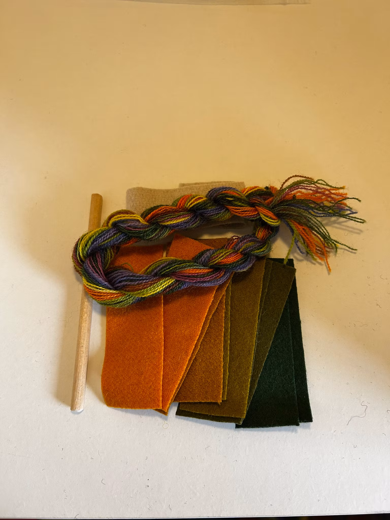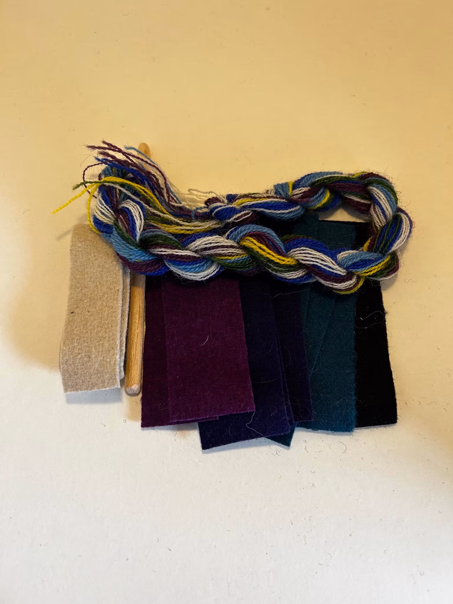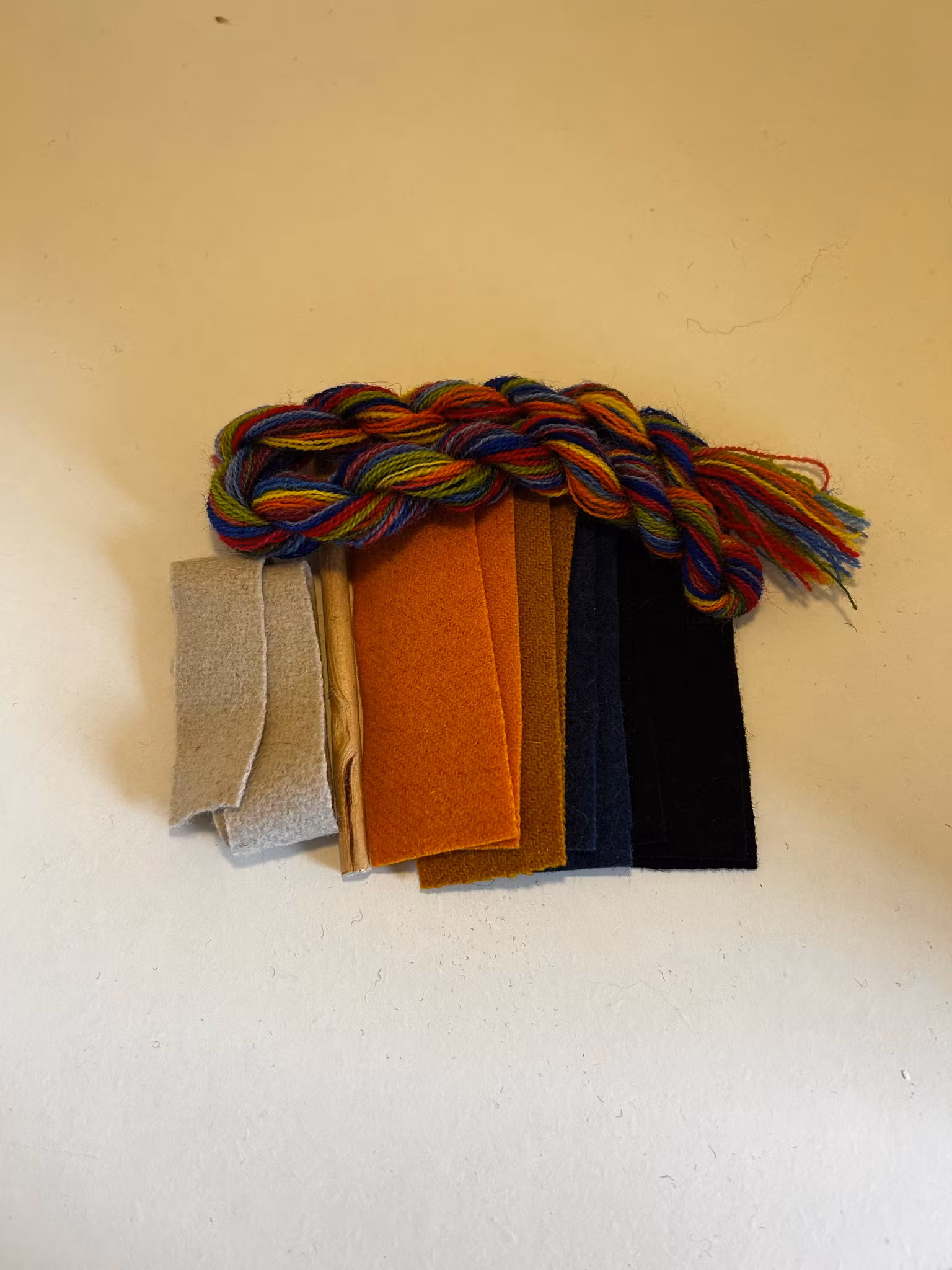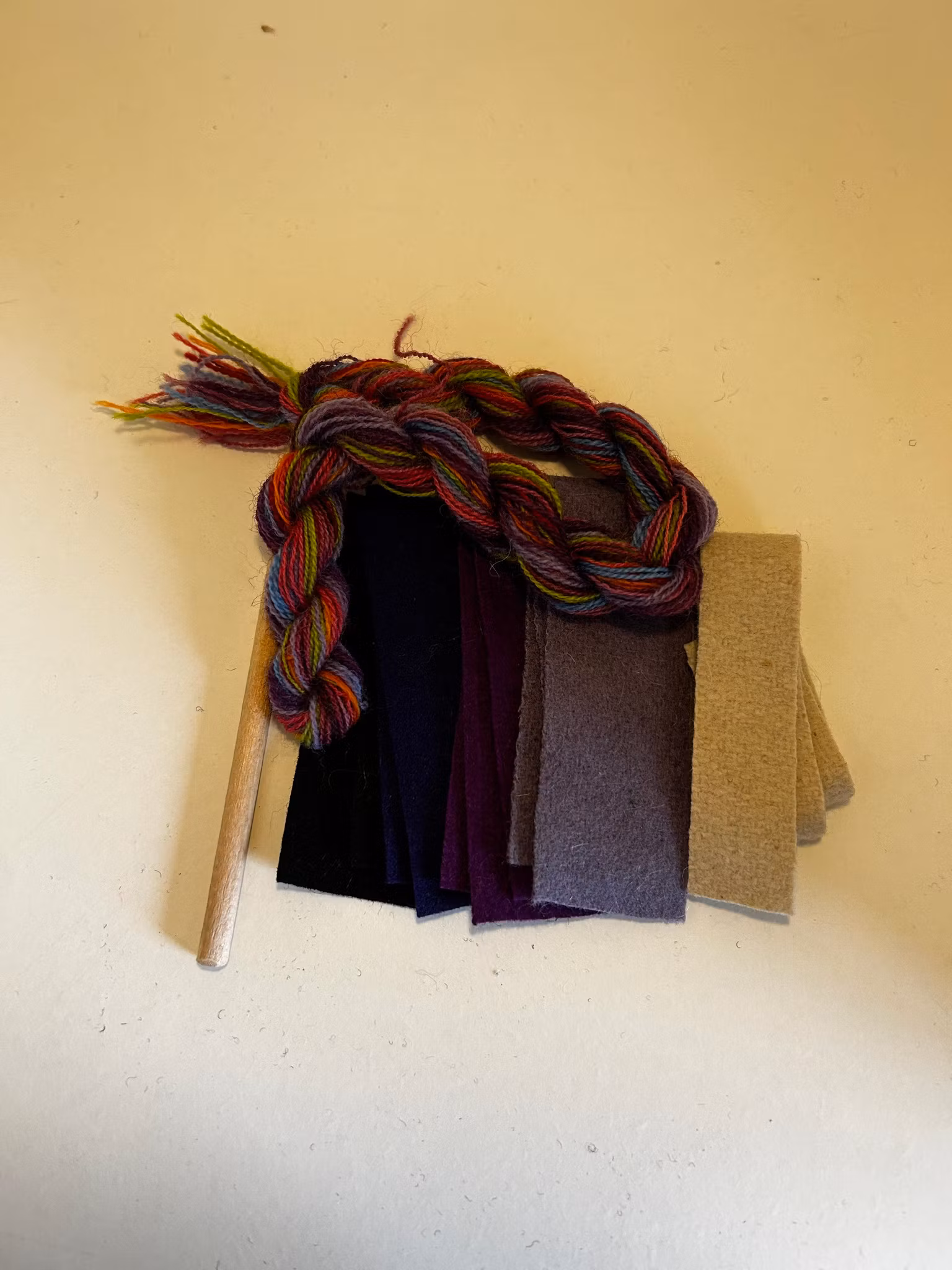 Sy dina egna ullpärlor. Materialsatsen innehåller: garn, vadmal i matchande färger till 10 stycken pärlor